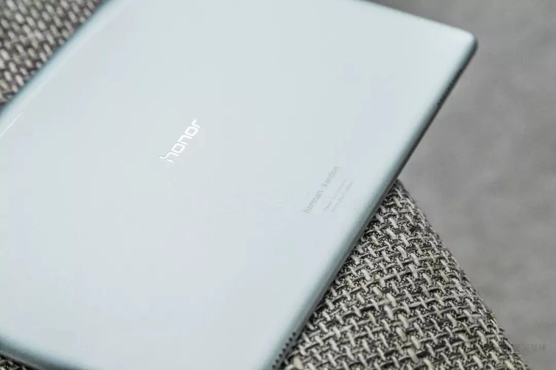 除以上信息外,荣耀平板 5 背部下方还有一行容易被人忽视的英文“harman/kardon”,这是一个国际知名的音响品牌,也是荣耀平板 5 最大的卖点。