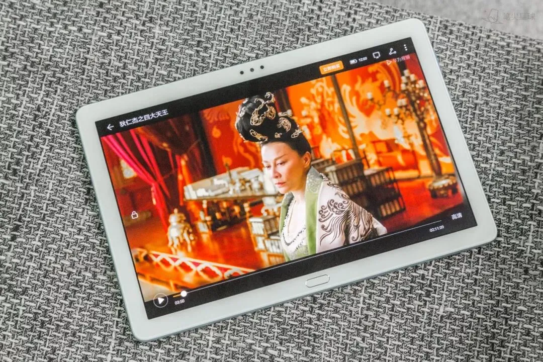 用扬声器播放音乐时,可以明显感受到高低音以及人声来自不同的方向,调至最大音量高音有一点尖锐,但也没有破音;到了看电影时,荣耀平板 5 的实力得以展现,在嘈杂场景下人物对白清晰,且背景音层次丰富,体验较好。