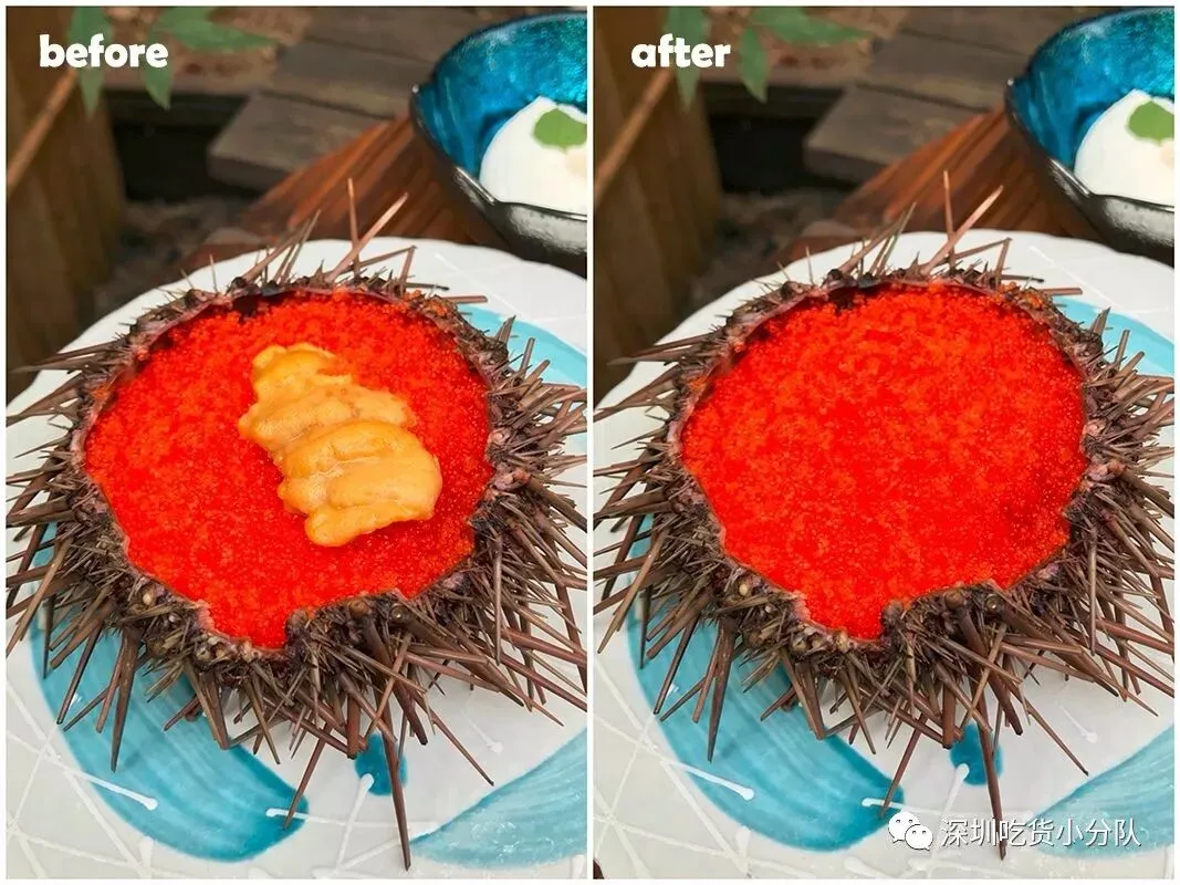 通过【修复】,可以在手机直接把碍眼的区域消除。让这几块海胆消失就只需要几秒,用手指涂抹海胆就可以了。