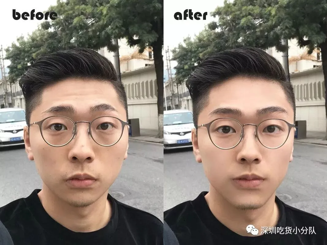 经过简单的平滑、形状调整、色调之后,朋友的朋友——小哥示范,变得更帅了。微瑕都能一键清除,眉毛也能手动加浓,变大眼睛的同时镜框还不会变形。只要熟练,就不会有明显的PS痕迹。