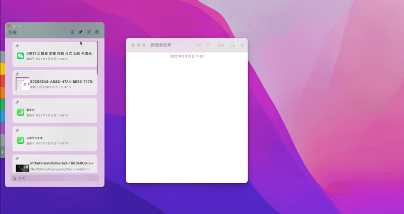 command-C,不管选中的是一段文本、一张照片、一个链接还是其他任何文件或文件夹,都会被按照复制时的时间顺序记录保存下来,在我们需要重新粘贴的时候,可以按需取用。管理剪贴板历史