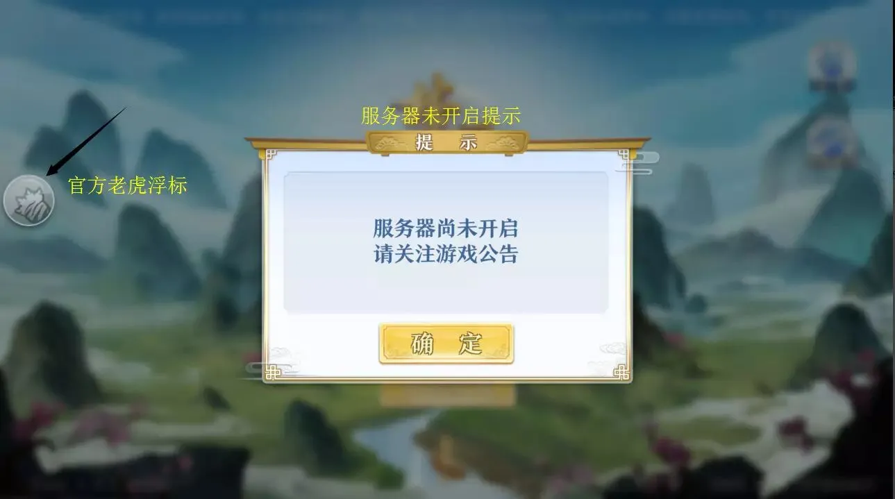 6. 选择服务器登陆,会弹出 服务器尚未开启 请关注游戏公告 的提示。