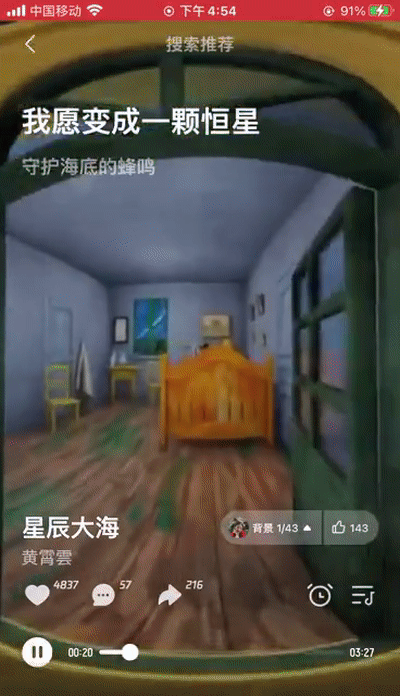 真的播放体验应该是一种画面,这个画面与歌曲完美的结合,马上带你进去一个思绪里。这一点波点音乐真是做到极致。绝了!