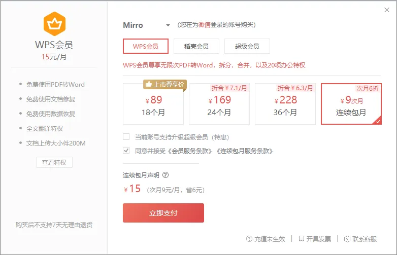 而且比起只能按年续费、或者买断本地版本的微软 Office,WPS 的会员策略反而是更适合我们大多数人的,随买随用,不浪费。