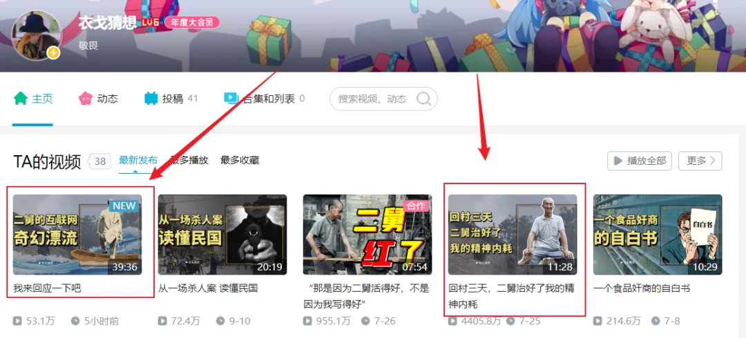 无聊刷B站的时候发现UP主“衣戈猜想”发视频了,就是那个《回村三天,二舅治好了我的精神内耗》的作者。