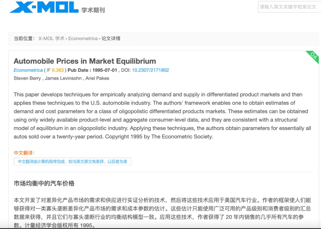 ●打开X-MOL官方网站或者微信小程序,在搜索框内对感兴趣的论文或文章的关键词进行中文检索,就会有大量相关英文文献的推荐,同时可以查看DOI号,进行文献的下载或收藏等。