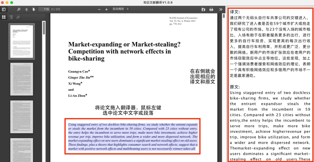●优点:知云翻译软件的所有功能全部免费,小伙伴们可以选择切换自己喜欢的翻译引擎(有道翻译、百度翻译等均被支持),文档“即选即译”。