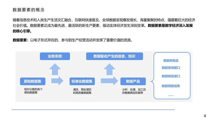 数据要素:指数据作为现代生产活动中的一种新型生产要素。它强调数据在参与生产、流通、分配等经济活动中所发挥的价值创造作用。就像土地、劳动力、资本一样,数据要素能够通过加工处理,与其他要素结合,产生新的价值。其核心在于“流动”与“赋能”,关注的是数据如何驱动业务增长和效率提升。