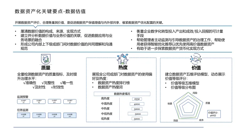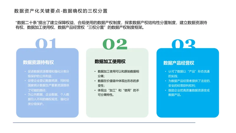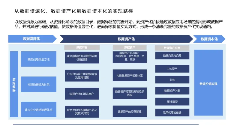 数据资产:指企业拥有或控制的、能够带来经济利益的数据资源。它更侧重于数据的权属、计量和变现。数据资产通常具备明确的产权归属(如企业所有),能够通过交易、抵押或直接使用产生现金流。它强调数据作为一种“财产”的形态,是数据要素在特定主体(如企业)内部的具体化体现。