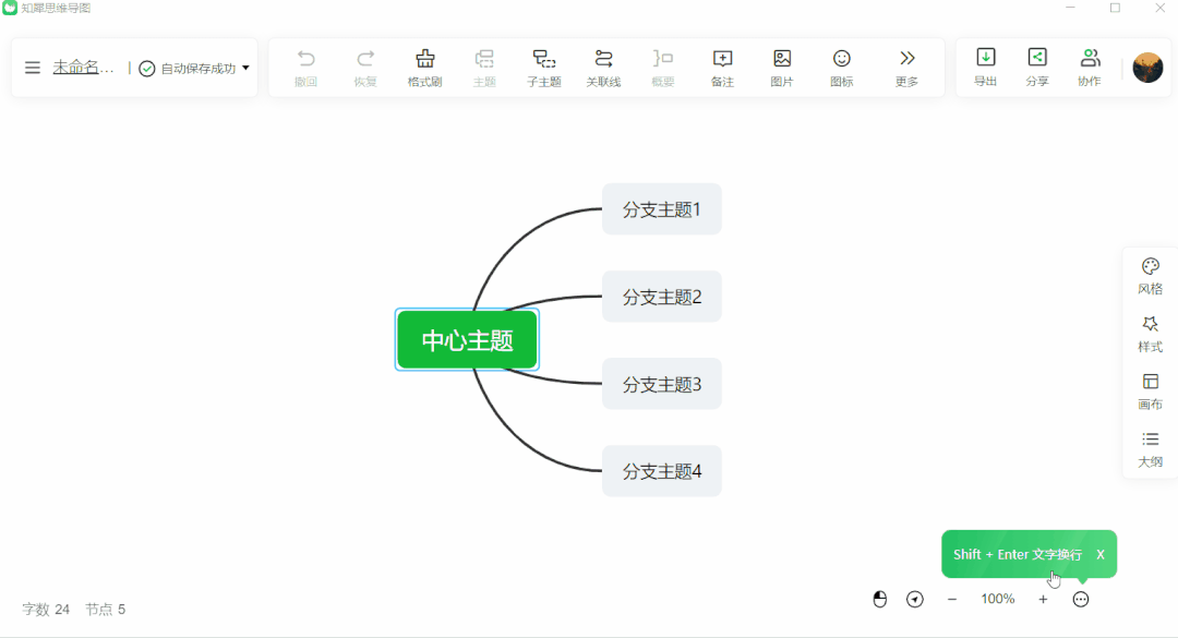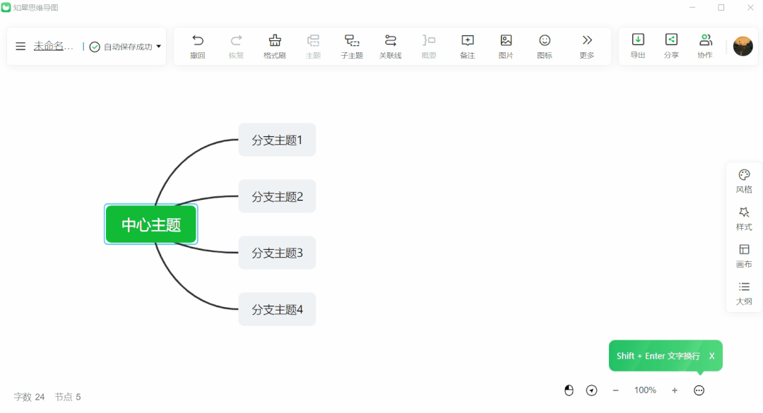 此软件支持更自定义设计风格,可以根据主题需求自由调整布局结构以及画布背景颜色,一键切换好看的样式,大纲编辑文本让内容更详细且不易出错。