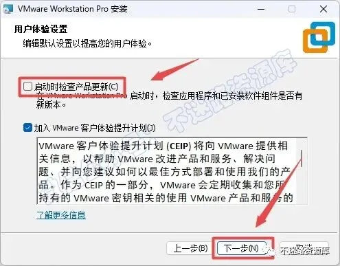 6.取消勾选“启动时检查产品更新”,点击“下一步”