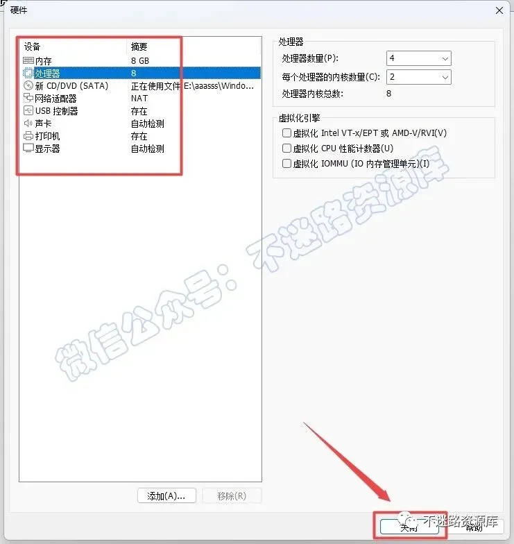 24.这里可以给虚拟机分配对应的选项,分配好后点击“关闭“