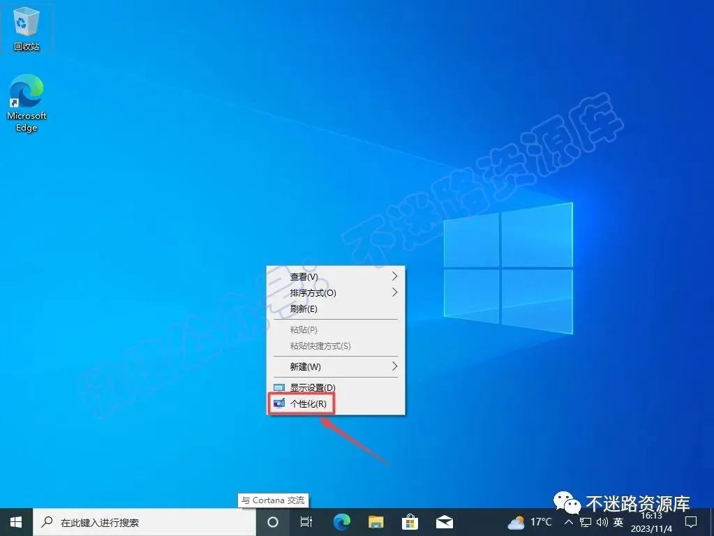 30.在激活之前我们先调整一下界面,鼠标右击桌面选择“个性化“