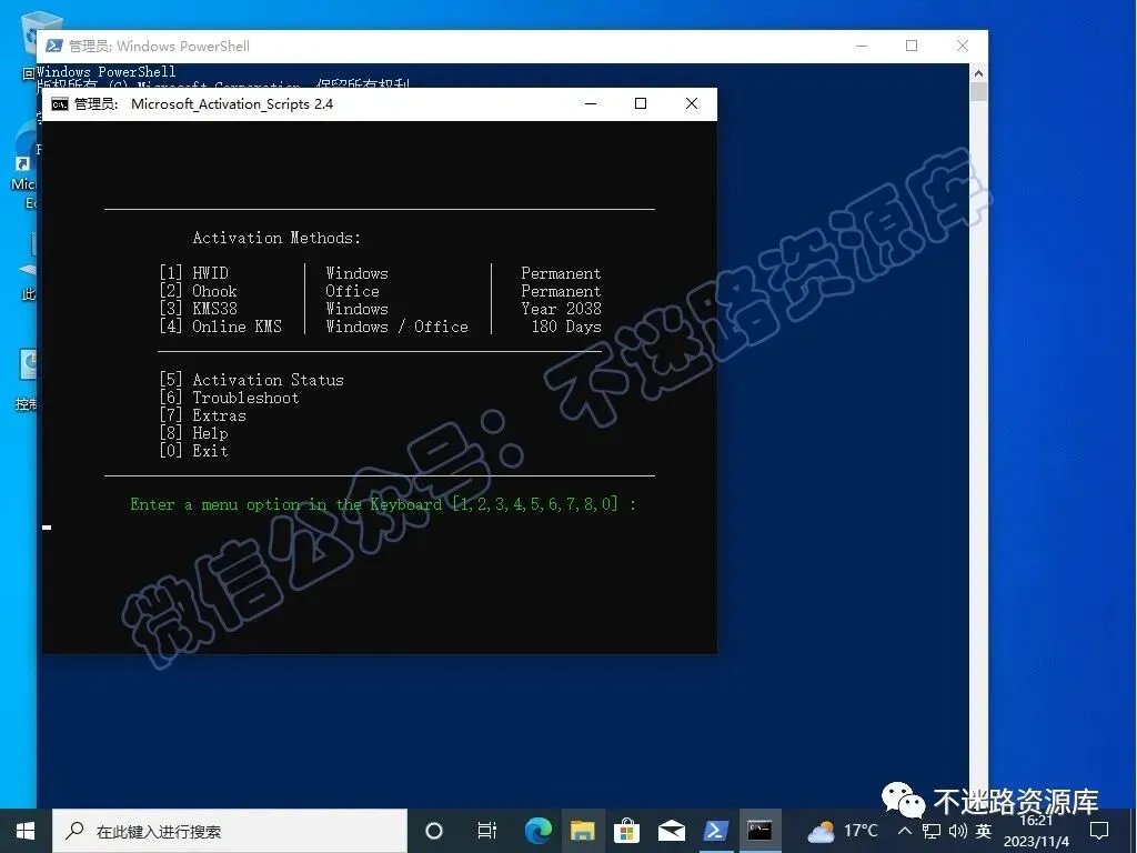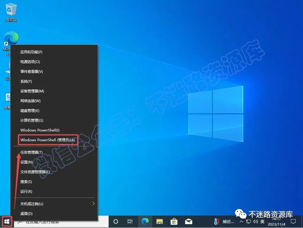 33.接下来开始激活windows系统,鼠标右键开始菜单,选择“Windows PowerShell(管理员)或者终端管理员”