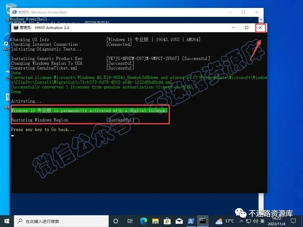 37.提示“Successful“,表示系统激活成功,关闭它
