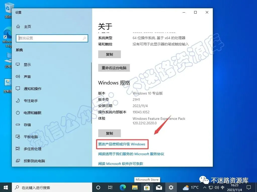39.点击“更改产品密钥或升级Windows”