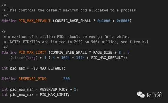 在alloc_pidmap中会判断pid_max,而这个值的定义如下