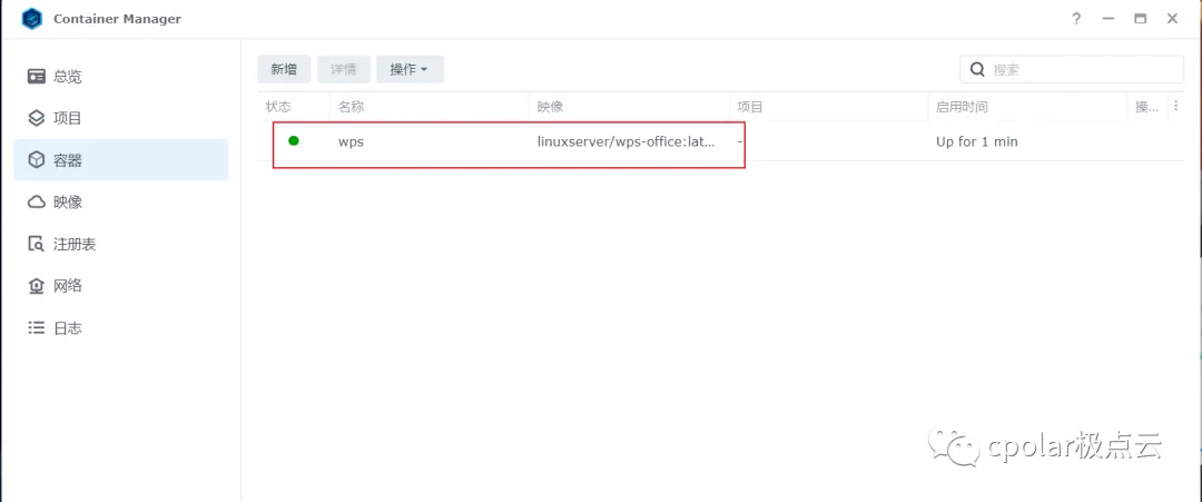 打开容器列表,可以看到运行的wps容器,下面进行本地访问