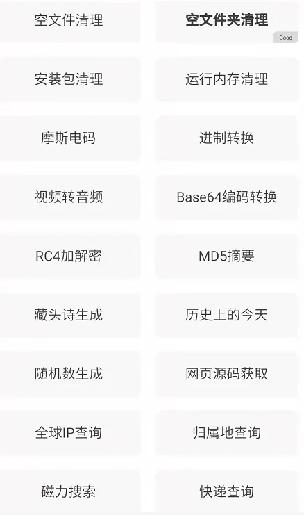 很多平时不常用但是却总会用到的工具集合在里面,完美解决了小工具不用的时候删除,用的时候需要再下载的麻烦事。
