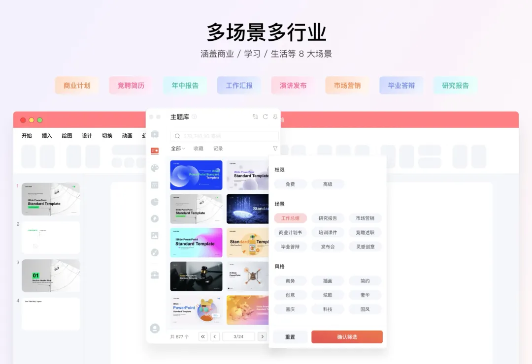 内含 8 大资源库,30 多万PPT 模板/素材,可以满足工作中的总结汇报、竞聘简历、市场营销、培训课件、商业计划书等场景的 PPT 制作,以及学习中的报告演示、毕业答辩、活动策划等等场景 PPT 制作需求。