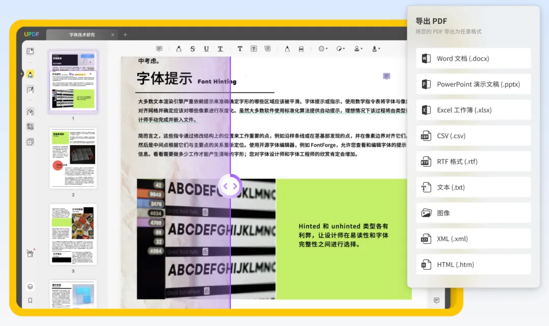 UPDF 是一款国产 PDF 阅读、编辑、格式转换软件,支持手机电脑平板全平台,包括 macOS、Windows、iOS、iPadOS、Android。