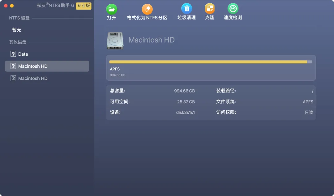 为了解决这一问题,在 Mac 上安装 NTFS 助手,就可以兼容 NTFS 格式的 U 盘和移动硬盘,从而方便地写入文件。软件最近刚推出 6 的大版本,可兼容最新的 macOS 14。