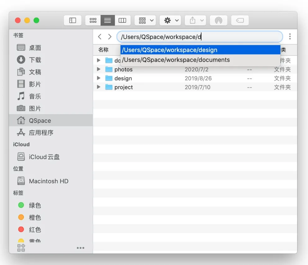 访达访问文件路径不方便?QSpace 的地址栏路径支持编辑、自动补全,访问任意路径更方便。