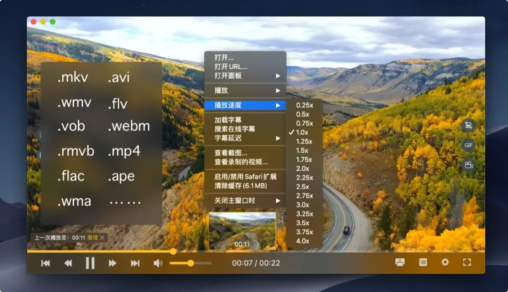 支持本地及在线多种格式音视频播放,提供倍速播放、进度条画面预览、截取动图、无线电视投屏等丰富功能。