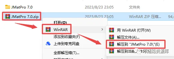 1.选中下载的压缩包,然后鼠标右键选择解压到“JMatPro 7.0”(没有解压选项点这里)