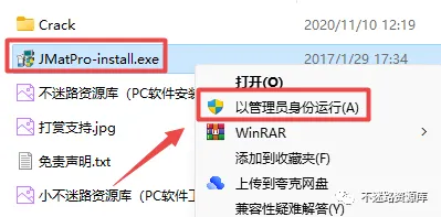 2.打开刚刚解压的文件夹,鼠标右键点击“JMatPro-install.exe”选择“以管理员身份运行”