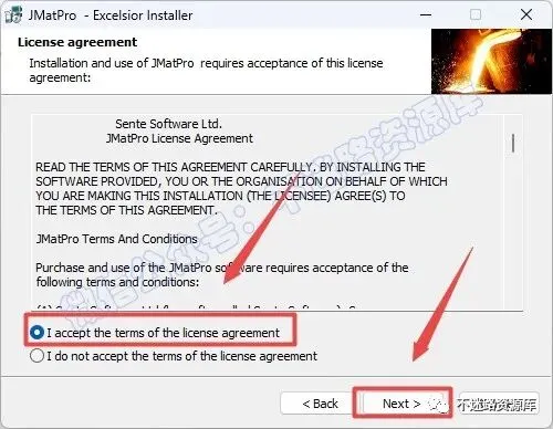 4.勾选“I accept the terms······”,点击“Next”