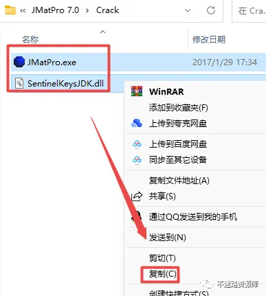 12.返回之前解压的“JMatPro 7.0”文件夹,双击打开“Crack”文件夹,选中该文件夹下的全部文件,鼠标右键点击“复制”