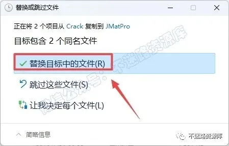 15.点击“替换目标中的文件”(若提示需要权限,点击“继续”)