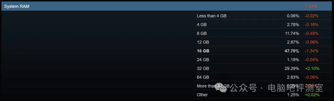 但该数据终究只能反应Steam平台以及更多与游戏相关用户的PC软硬件使用情况。完全不能代表一个地区或某一类群体的真实水平。