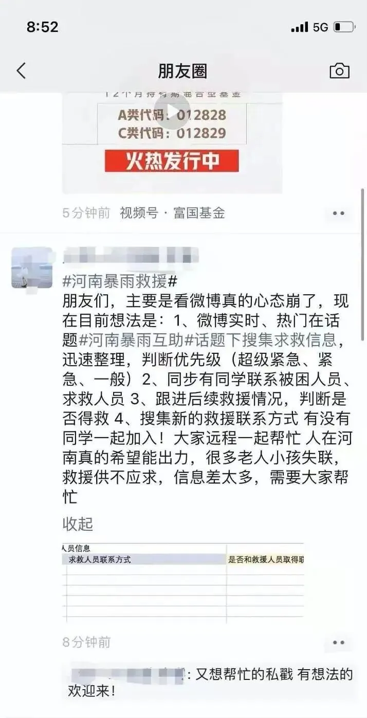 救援是另一个难题。他们的做法就是刷微博,然后联系求救人,询问他们是否到救援,核实情况。后来联系到了一些专门的志愿服务组织和救援机构,可以提供线下志愿和救援服务。“我们建了专门的救援群,把文档这个群里,让他们根据信息来判断是否可以去救援。到19日深夜两点多,很多媒体的工作者也加入进来整理信息。”