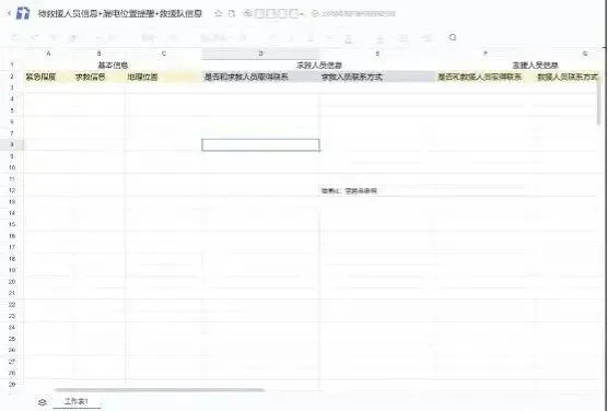 7月19日晚20:57:12,她创建了一个文档:《待救援人员信息》,这是一个在腾讯文档上进行救援信息收集的在线表格。