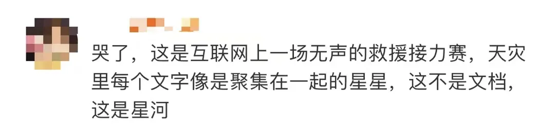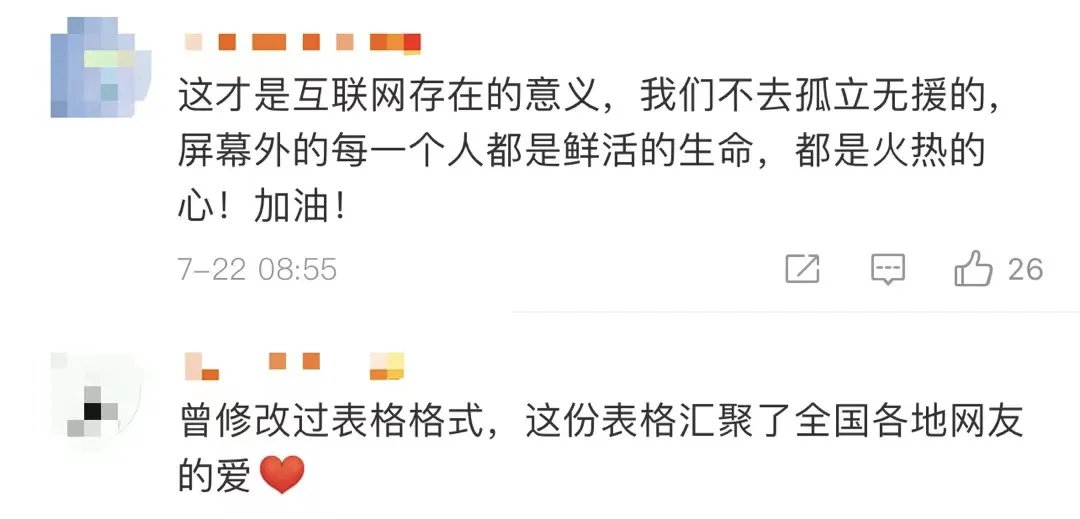 让有用的信息流转、对接起来,对被困住的城市至关重要。暴雨发生后的24小时,这份文档在和时间赛跑。背后的每一个参与者,因互联网汇聚起来,孤立的、分散的信息产生联结,在救灾中发挥巨大的能量。来自五湖四海的善意汇成一股暖流,令人感动,就像歌词里所唱:“你知道,就算大雨让城市颠倒,我也会给你怀抱。”
