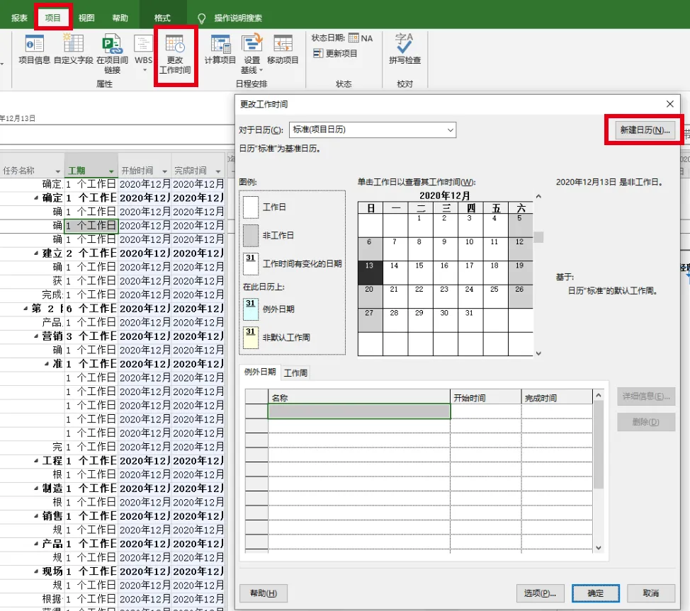 2)创建项目日历