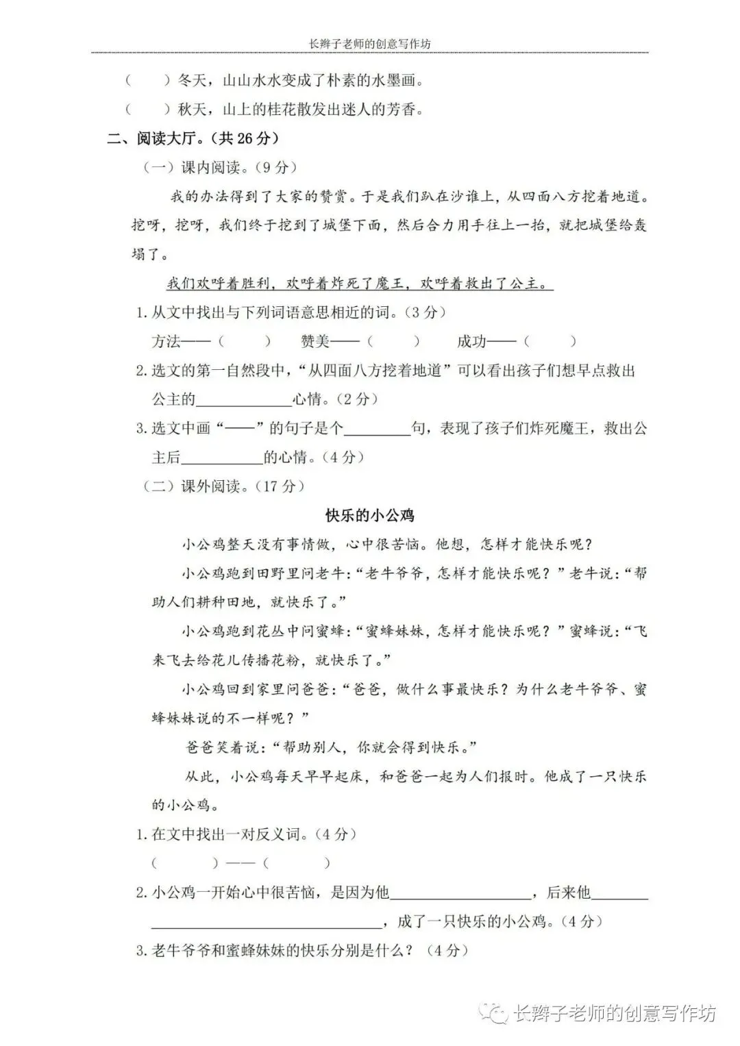 特别申明:“双减”之下,严格控制书面作业时长。长辫子老师建议:变“写”卷”为“读”卷。拿到试卷,通读一遍,口头填空,不会的看参考答案。不懂的弄明白,即可。