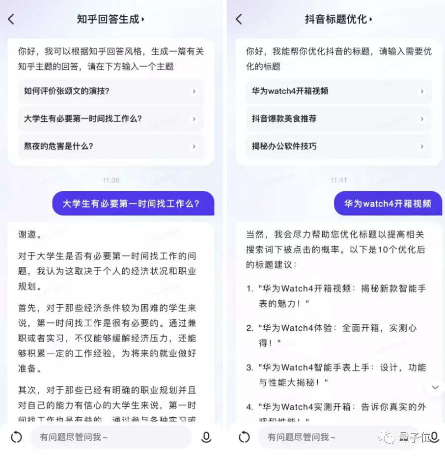 而除了小红书探店文案,文心一言还微调出更多针对性的文案功能,比如“知乎回答生成”、“B站视频脚本”、“抖音标题优化”、“V50小助手”……相当有特色。