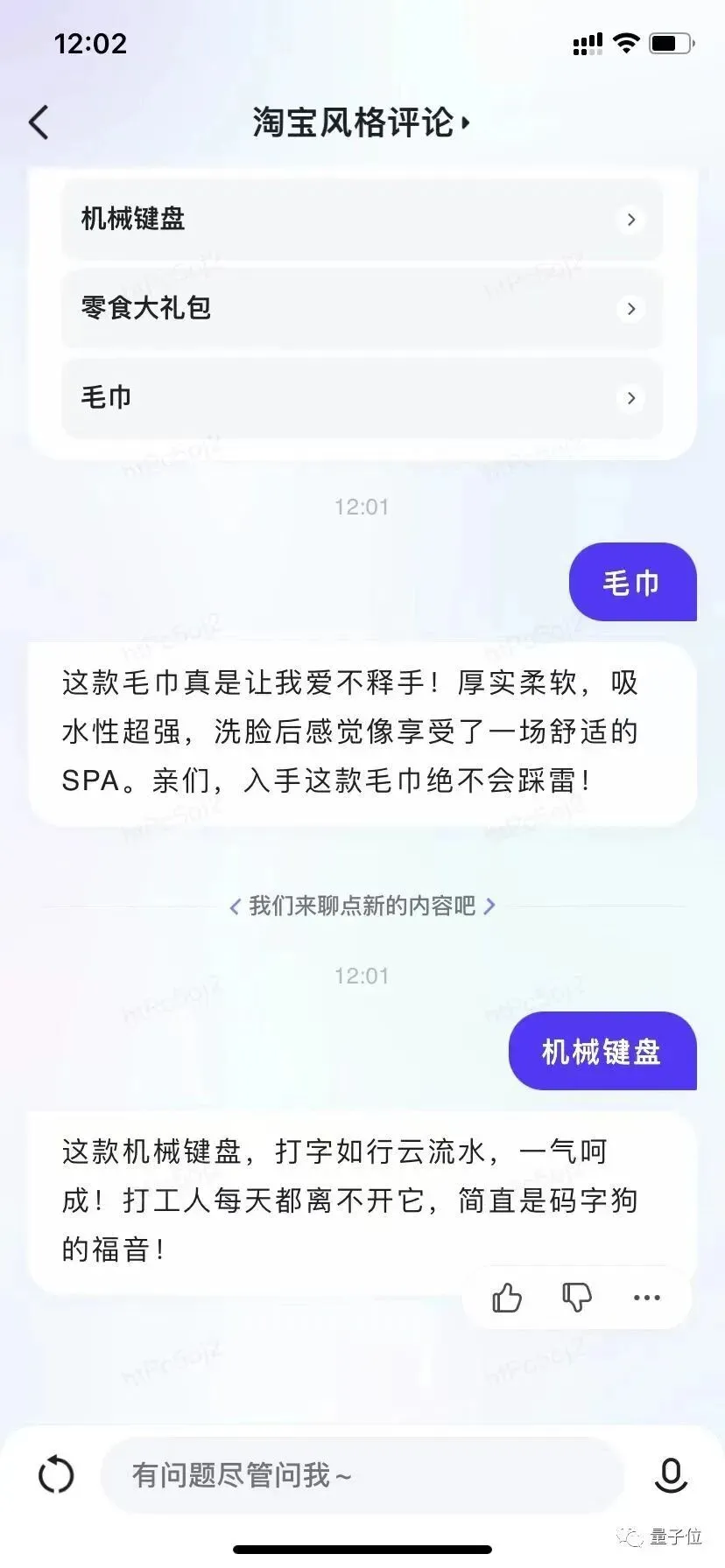 至于淘宝评论,文心一言的回答确实不是很违和,主打一个“真情实感”,可以直接拿来用: