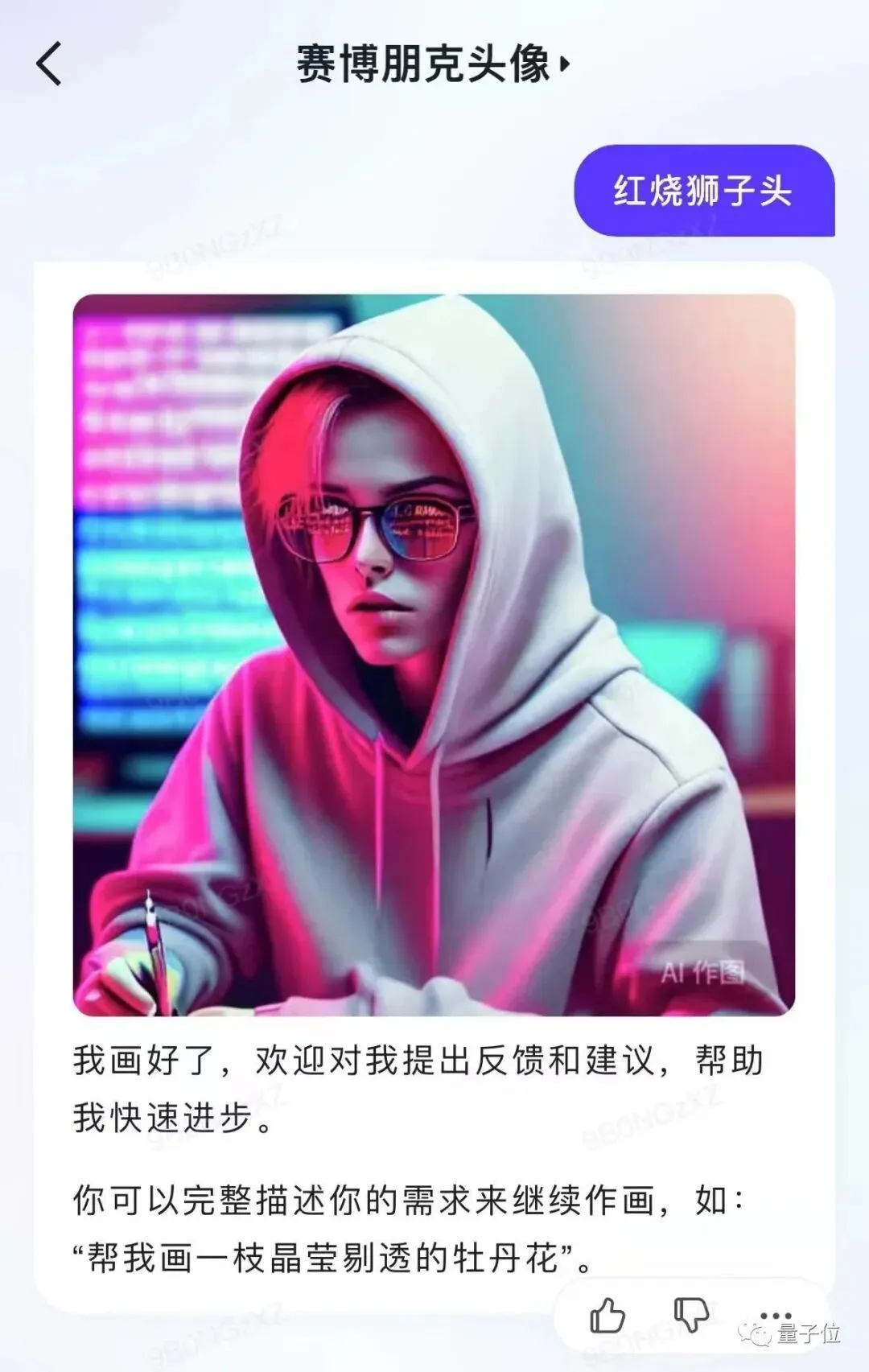 例如只需要简单输入“萌萌哒兔子”,便可秒生成一只有模有样的赛博朋克风拟人化的兔子。