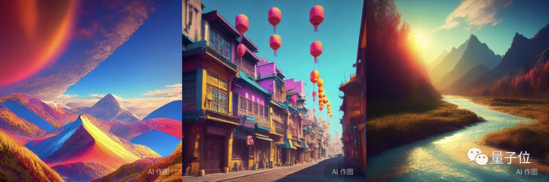 还有“风景画生成”玩法下的山川、河流以及街道等: