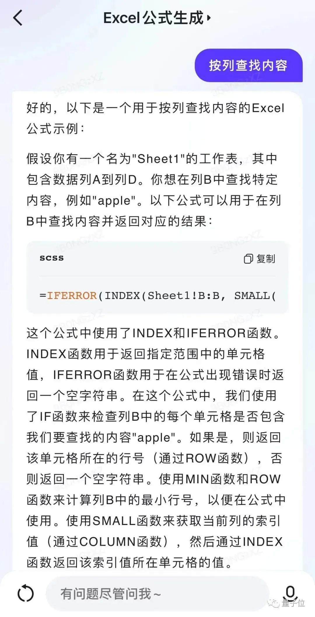 难背的Excel公式也可以不用记了,现在也是只需要个“提问”的动作即可。