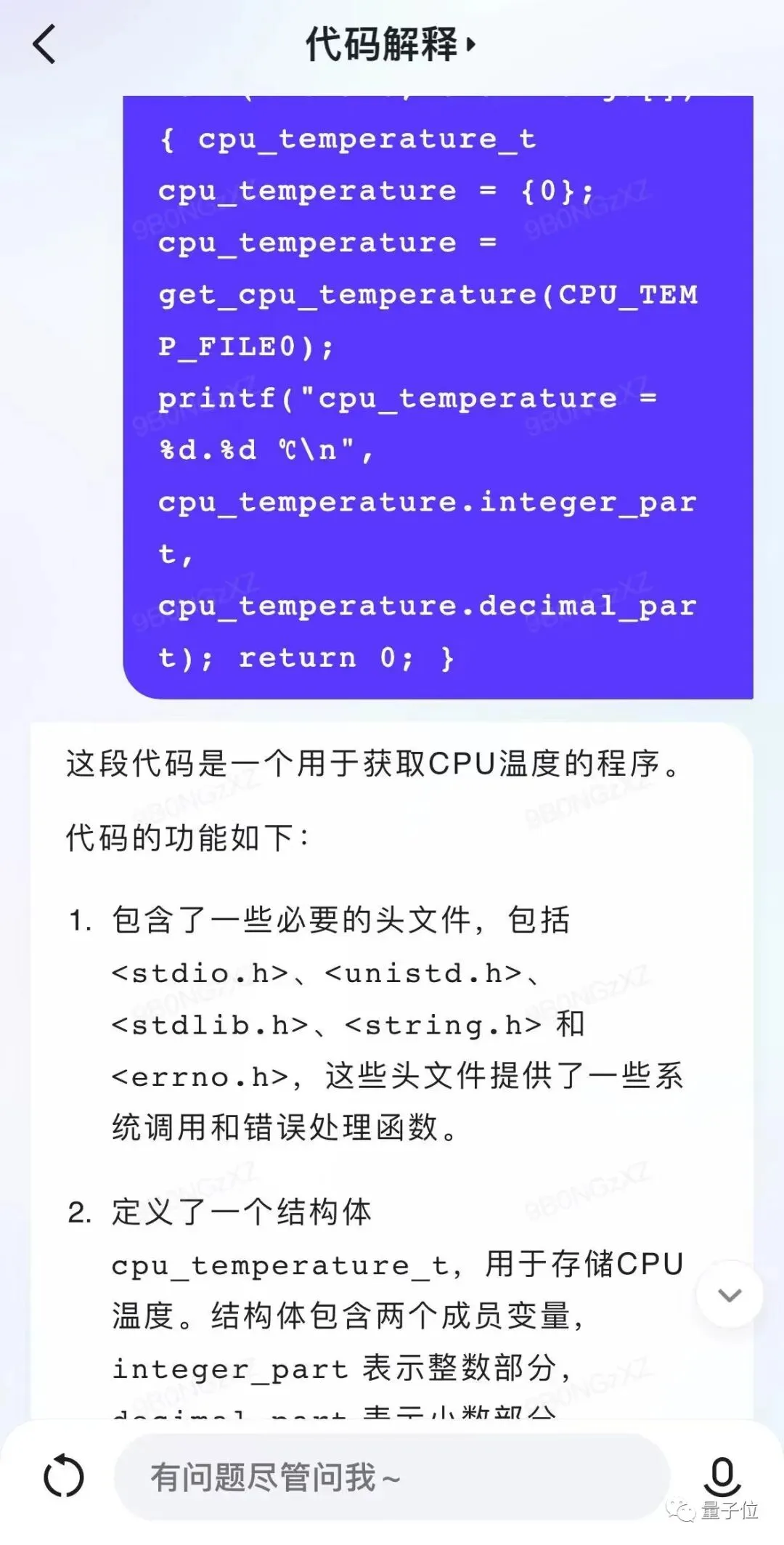 还有像看不懂的代码,现在也只需要“丢”给文心一言APP就可以了: