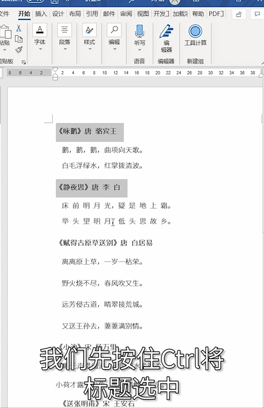 ❶ 我们先按住 ctrl 将标题全部选中,在【开始】里修改样式,选择标题 1 样式;
