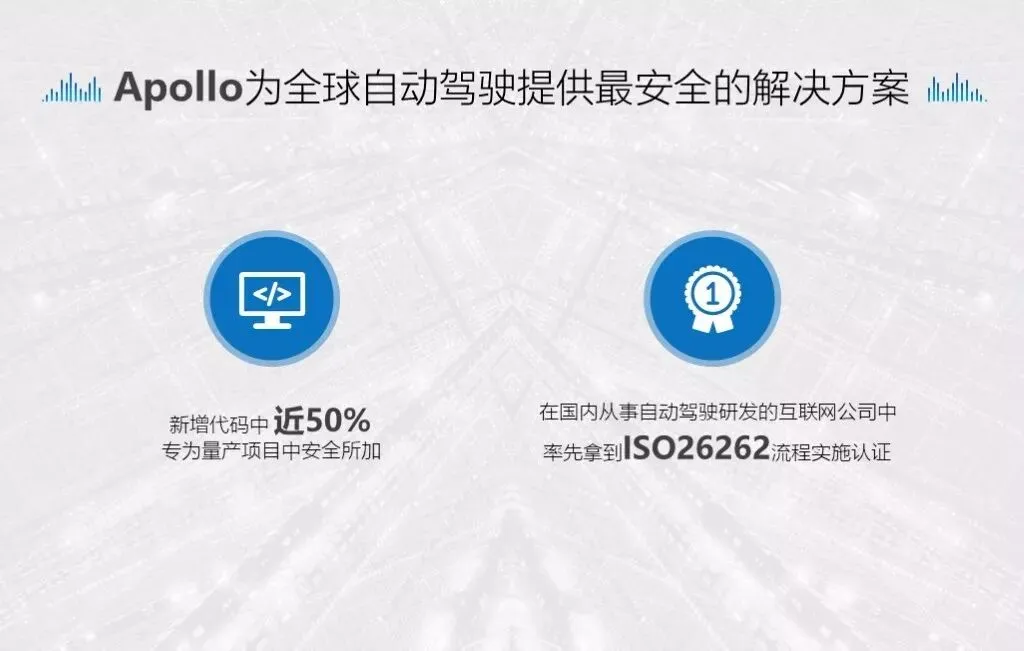 百度 Apollo 自动驾驶平台从开放到量产的过程中,增加了很多新的代码,而其中接近50%的代码都是为了安全增加的。正因为对安全问题的重视,百度成为国内从事自动驾驶研发的互联网公司当中第一个拿到了 ISO26262流程认证的公司。