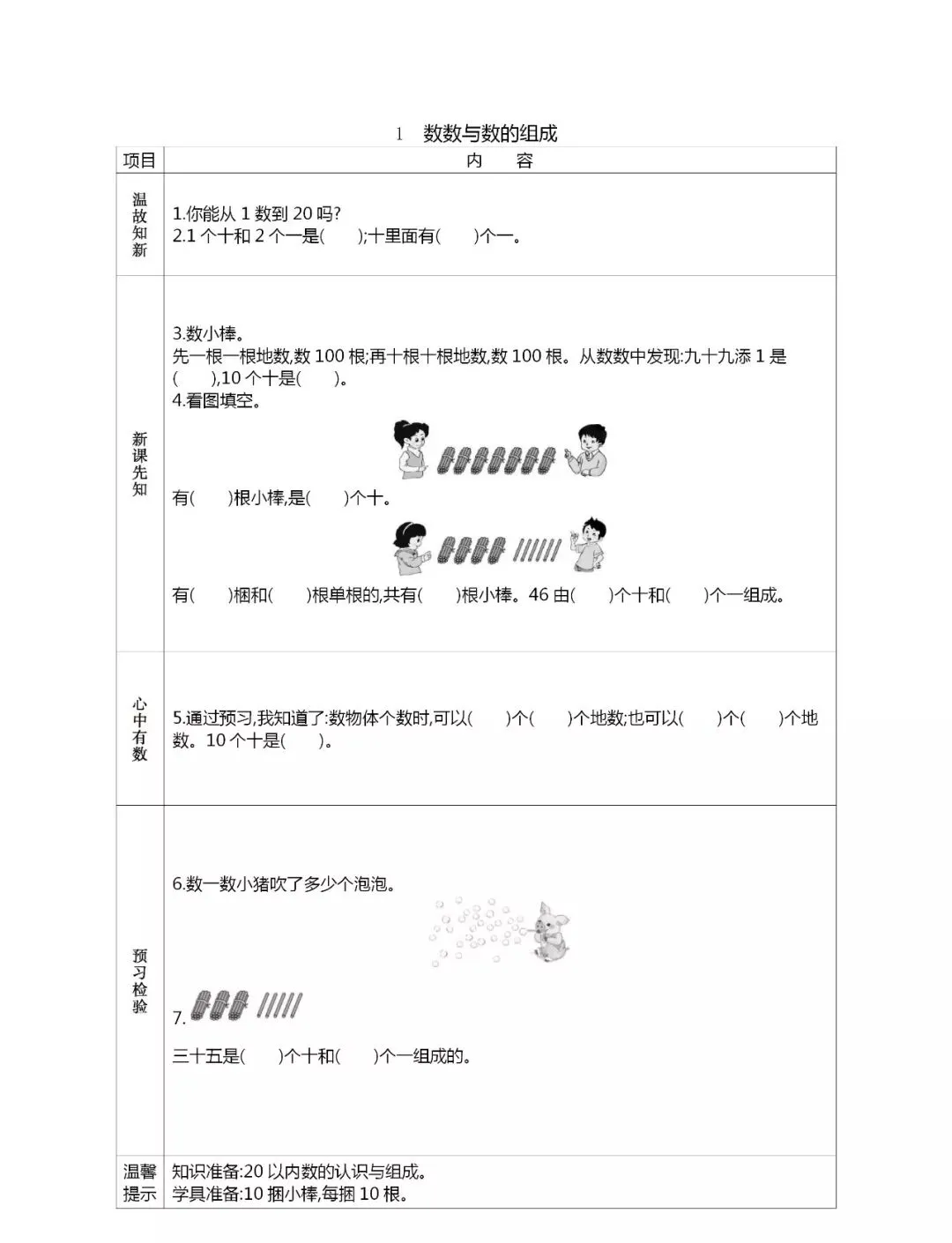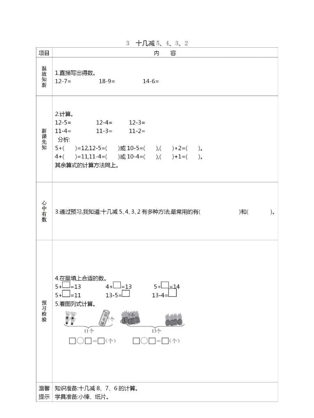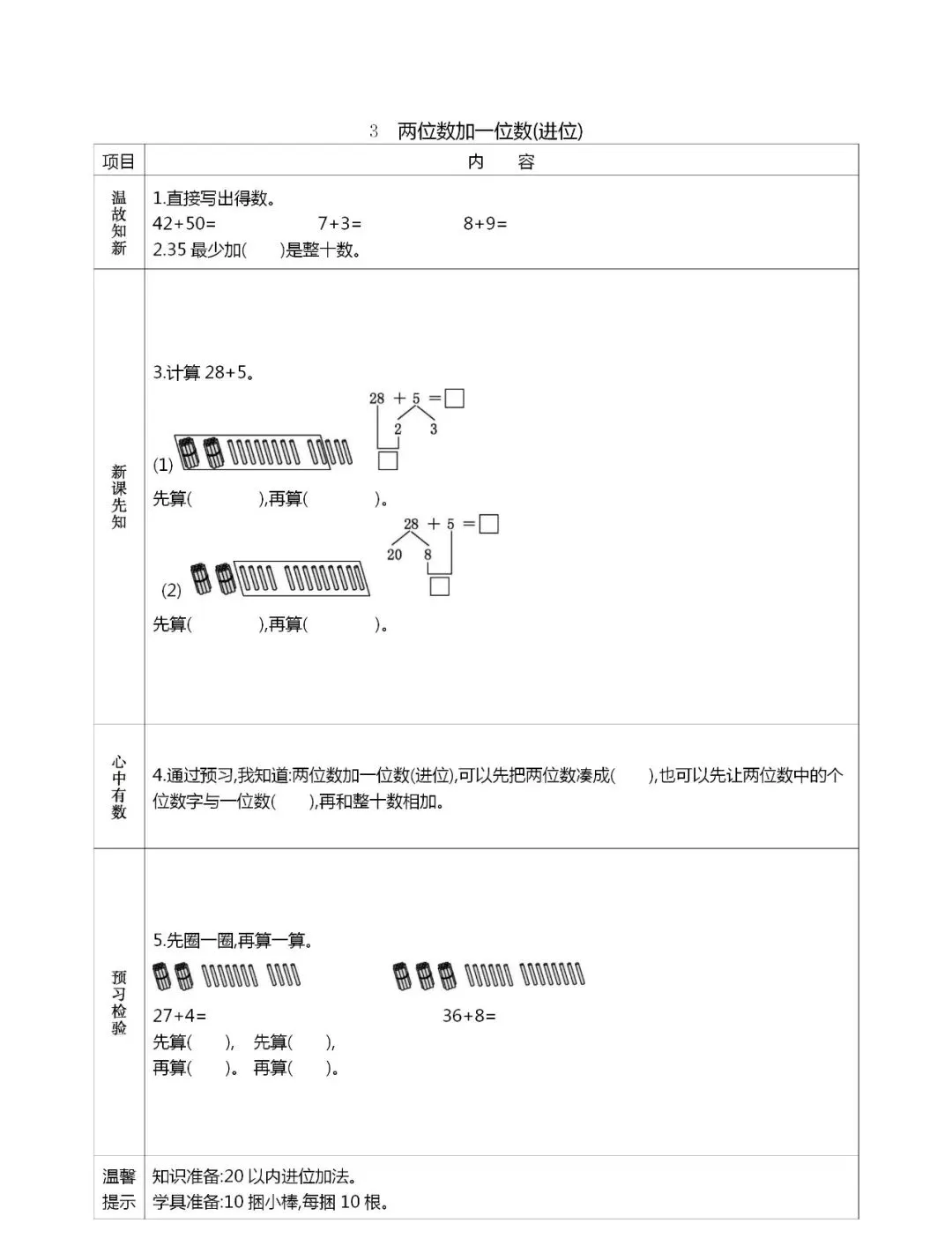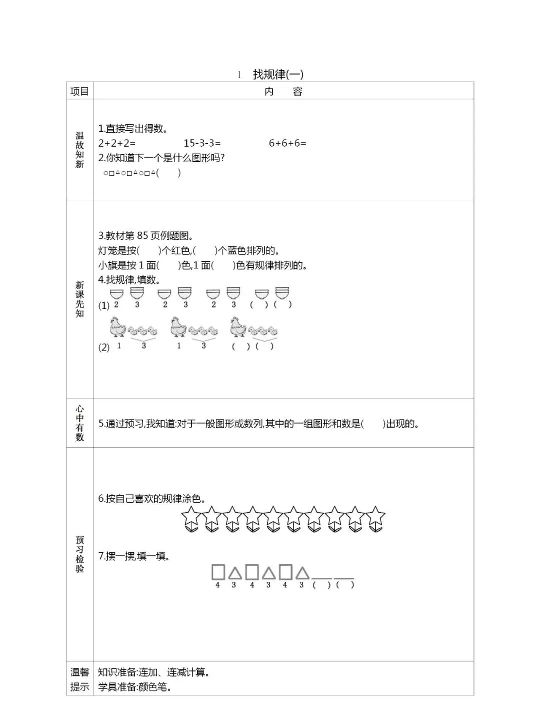 人教版一年级数学(下册)课前预习单,可打印!