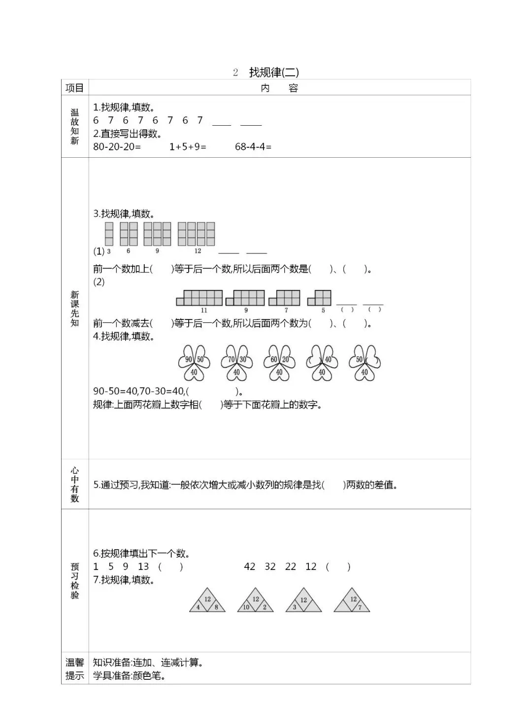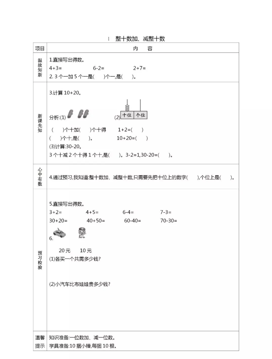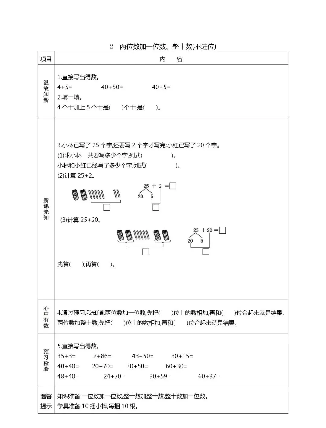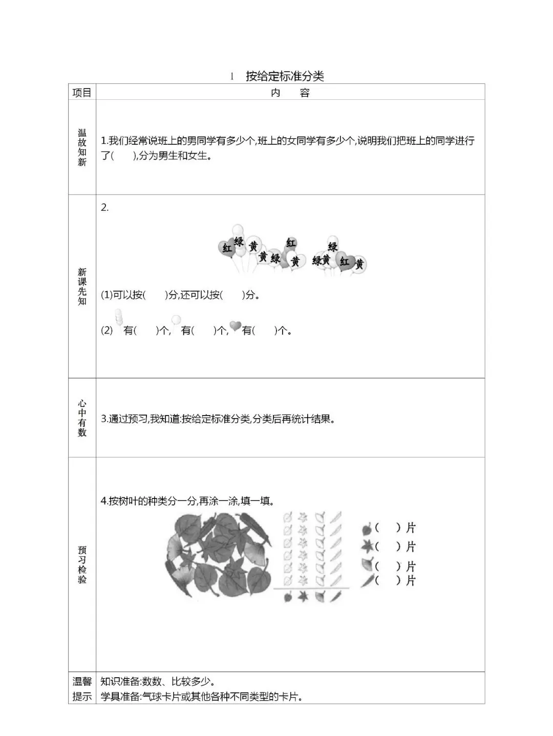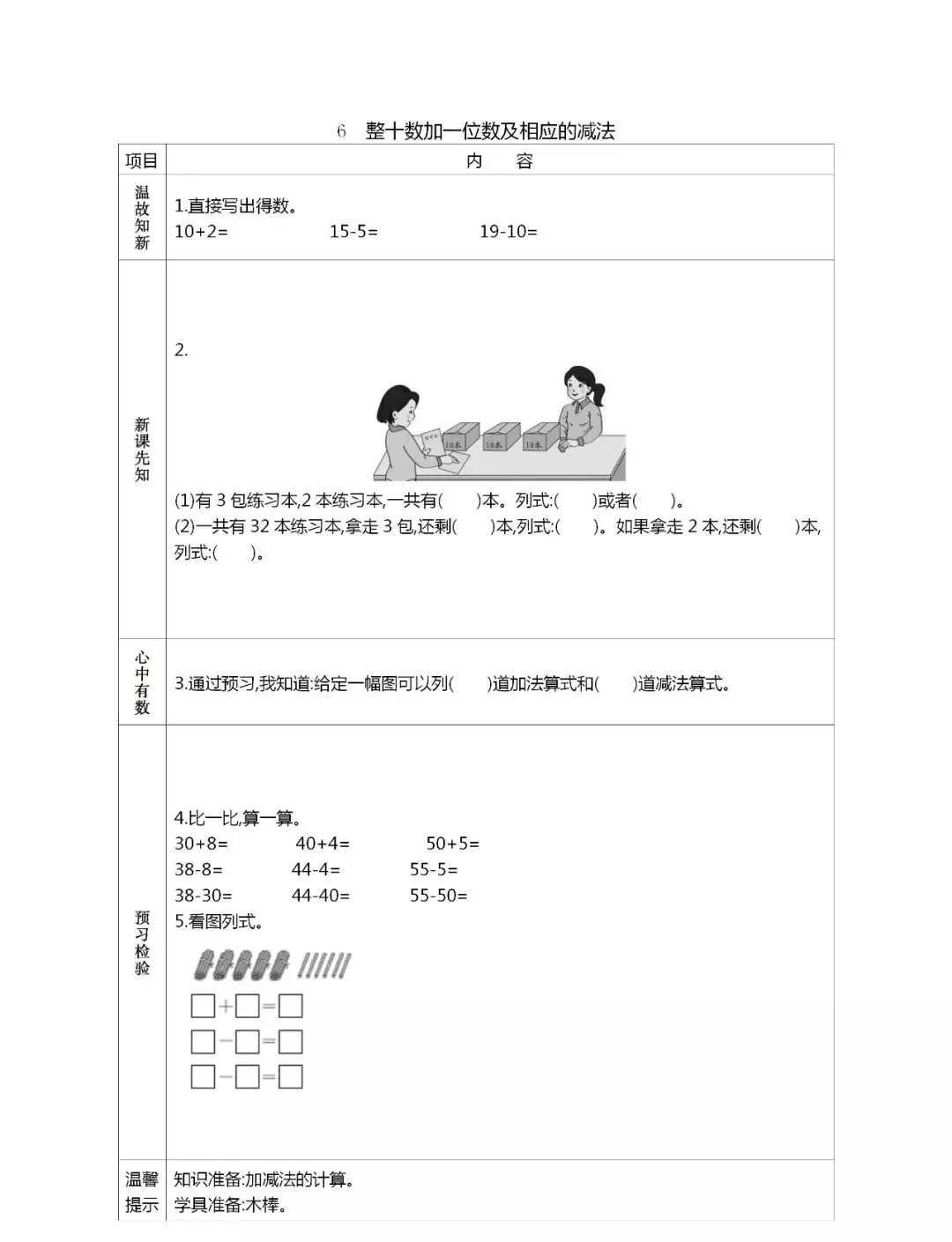 人教版一年级数学(下册)课前预习单,可打印!