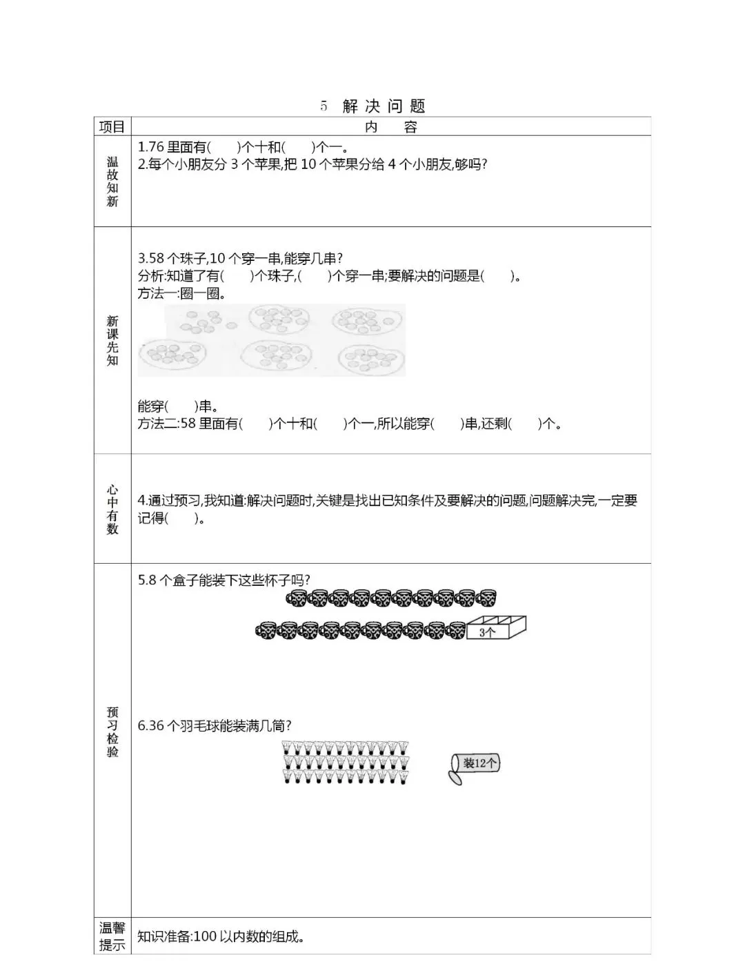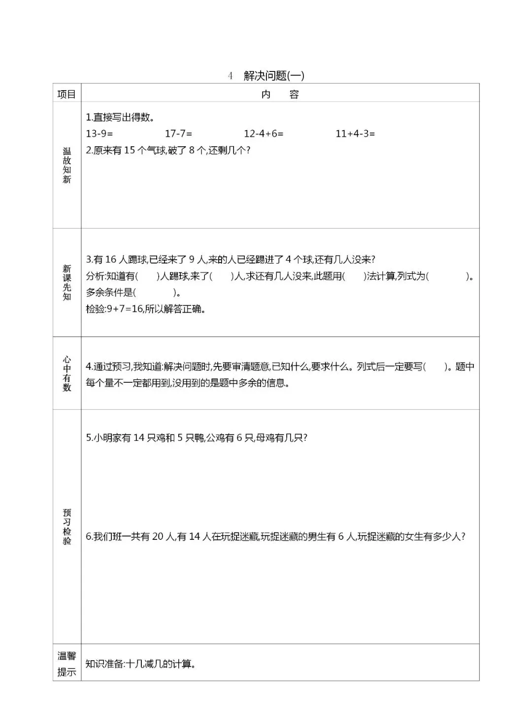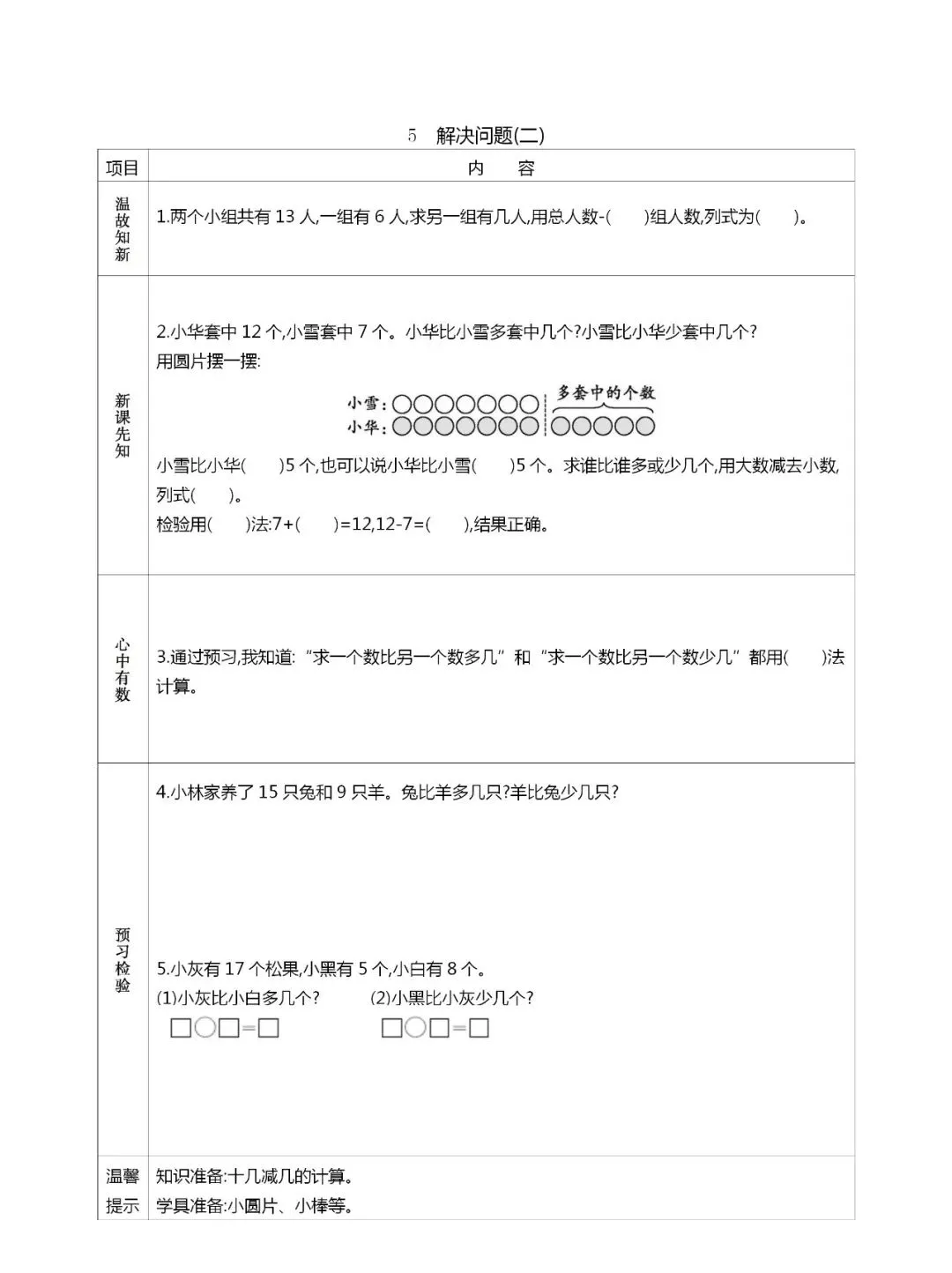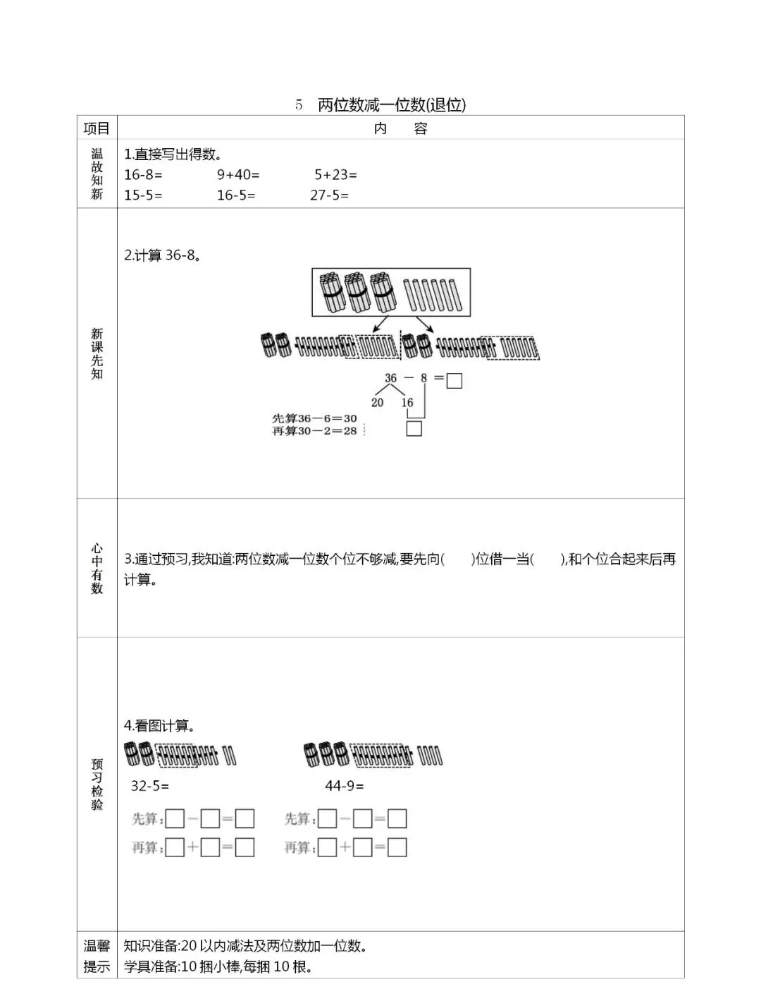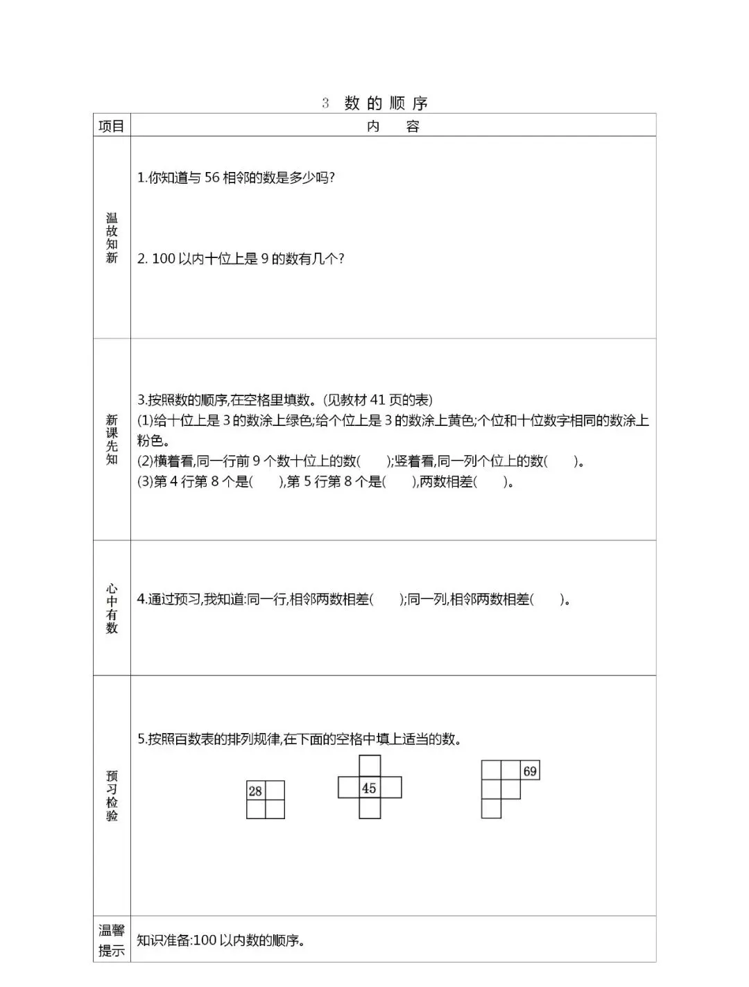 人教版一年级数学(下册)课前预习单,可打印!